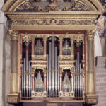 Questo liuto di grandi dimensioni, oggi conservato ai Civici Musei di Brescia, è denominato Grossoktav Basslaute nel trattato Syntagma Musicum (1615-1620) di Michael Praetorius. Si conoscono solo tre strumenti di questa tipologia: il Magno Stegher conservato a Bologna, il Michael Hartung conservato a Norimberga e il presente liuto conservato nel Museo di Santa Giulia di Brescia, uno dei due unici esemplari al mondo conservati di Mateo Reilich. Risalente al 1641 (nel cartiglio si legge “Mateo Reilich / in Brescia. 1641”), è caratterizzato da una lavorazione di grande finezza e composta da essenze rare. Dotato di otto ordini di corde, di cui il primo singolo e i restanti sette doppi, lo strumento ha le seguenti misure: lunghezza massima mm 1130; vibrante mm 905; cassa mm 645; larghezza massima mm 420; lunghezza manico mm 370; profondità massima mm 212. La tavola armonica, con molte riparazioni avvenute nel corso del tempo, è in legno di abete e presenta una rosetta tripla, alla quale fu aggiunto un quarto settore in epoca successiva, con il contorno a imitazione dell’originale. Sia il ponticello che la decorazione a forma di picca sono originali, a differenza del filetto presente attorno al profilo e dei tasti posti in prossimità del manico che non sono della stessa epoca. Sia il guscio che la controfascia esterna sono in Snakewood (Piratineira Guaianensis), una essenza tropicale assai pregiata e rara, intercalate da filetti in avorio. La tastiera è in ebano con filettature in avorio e con decorazioni centrali in avorio ed ebano. Il manico e il cavigliere sono impiallacciati e filettati con strisce in avorio. Il capotasto e i piroli non sono originali, così come è dubbia l’originalità della decorazione prossima alla tavola armonica, con incise le lettere G B F.
