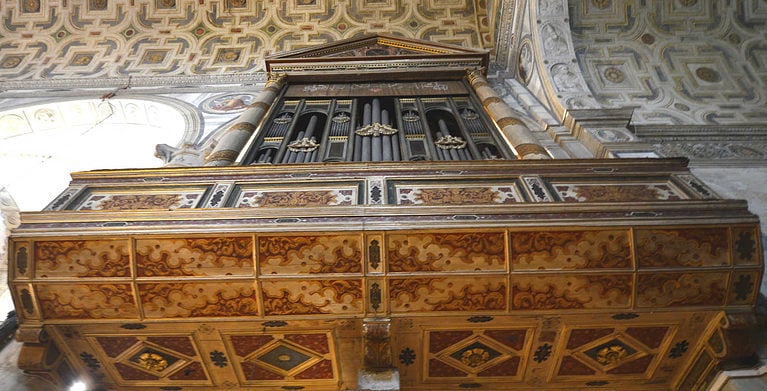 Una particolare citazione dell’organo viene fatta dallo stesso Costanzo nell’Arte Organica (1608), quando il figlio Giovan Francesco ricorda che tra gli organi “stravaganti” costruiti dalla famiglia «Vi è pur ancora l’organo di Santo Gioseppe di questa Città che ha il registro principale spezzato, che un giorno fui a ponto per toccarlo, & gustarlo, & restai confuso perché, tirando il primo registro pensandomi di aprirlo tutto intiero, & volendolo io suonare, non suonavano, ne rispondevano se non quattordeci, o quindeci canne nei bassi, si che m’accorsi puoi della divisione, & misi dentro il seguente registro, si che lo trovai doppo tutto intiero».