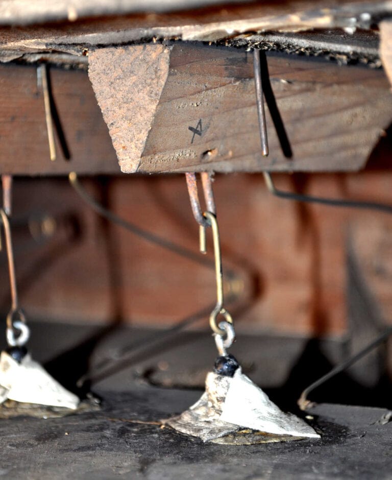 Somiere a vento con 13 pettini e 53 ventilabri che ci indicano l’originaria estensione della tastiera di 53 tasti