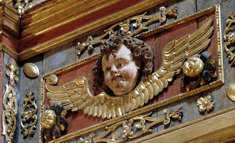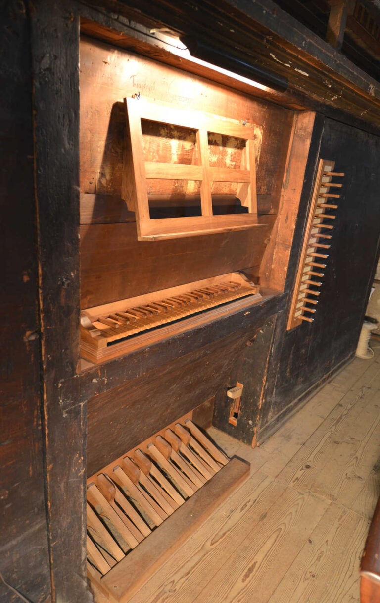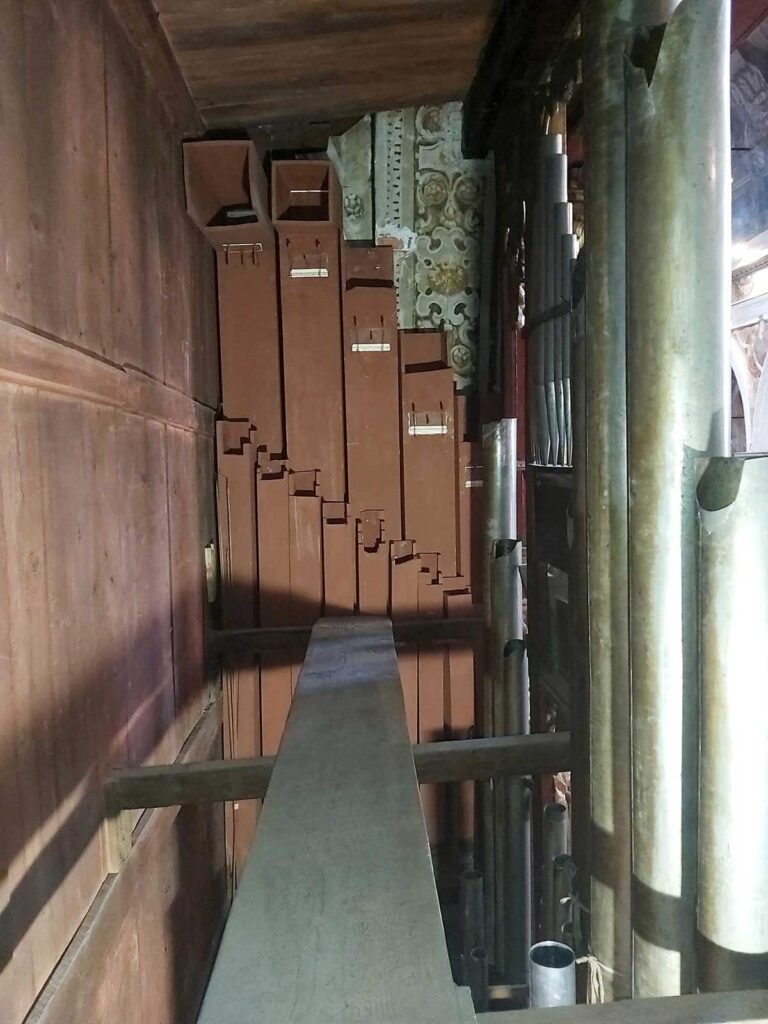 piedi posto al centro. I due organetti morti, di 11 canne ciascuno, sono posti in corrispondenza delle