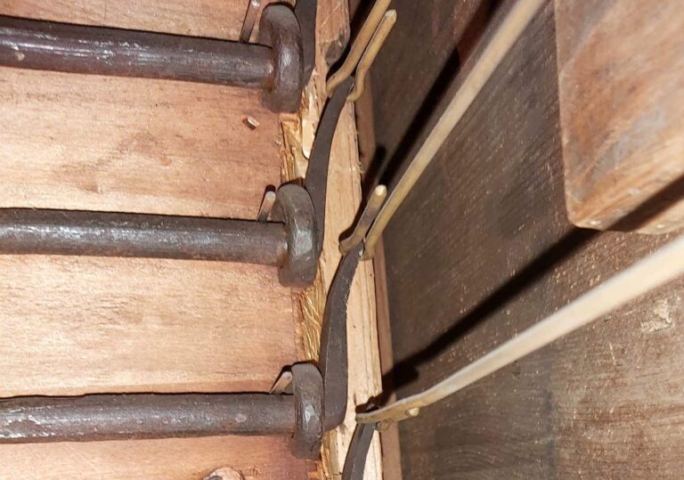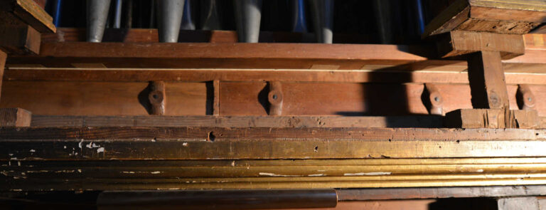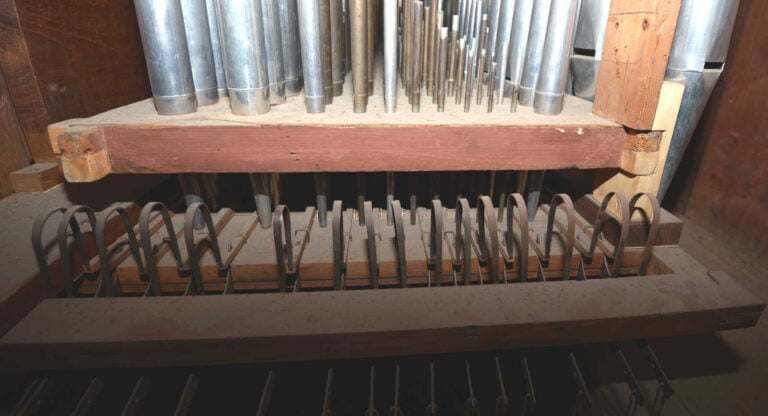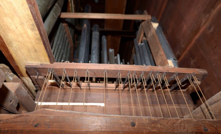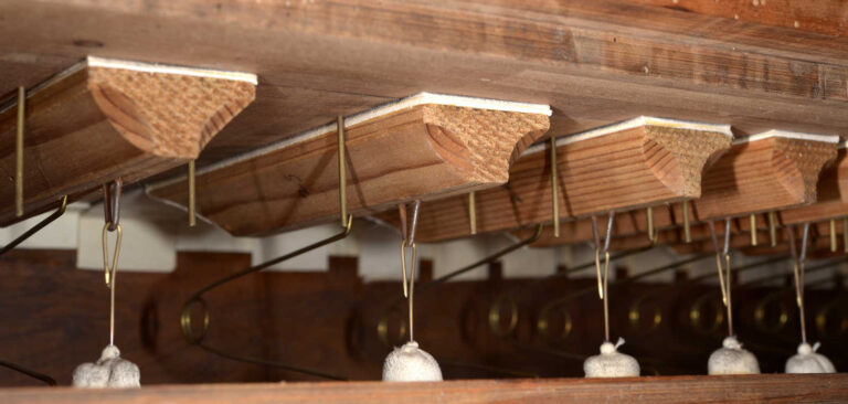 Crivello in cuoio (1992) – bocche delle canne sotto il piano.