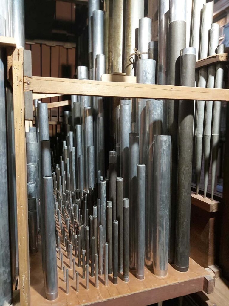 formata da 37 canne in stagno divise in 5 campate (5-11-5-11-5) disposte a cuspide a partire dal Fa0 di 12